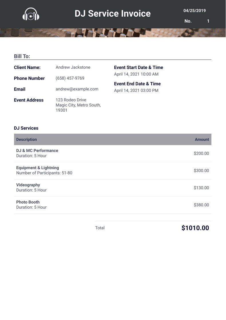 As a DJ, it is important to have a professional invoice template that you can use to bill your clients for your services. A well-designed invoice not only helps you get paid on time, but it also reflects positively on your brand and business. With a printable DJ invoice template, you can easily create and send invoices to your clients in a professional and organized manner.